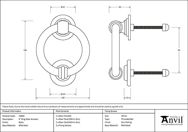 Black 4" Ring Knocker