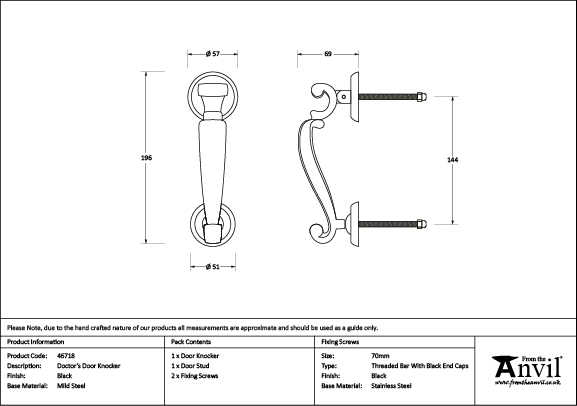 - The Doctor's door knocker is forged from mild steel. Its high-quality materials and exquisite design make it a perfect choice for external doors, with many matching products available.