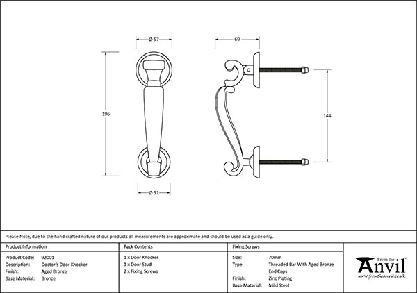 - Our Doctor's door knocker is forged from solid bronze. Its high-quality materials and exquisite design make it a perfect choice for external doors, with many matching products available.