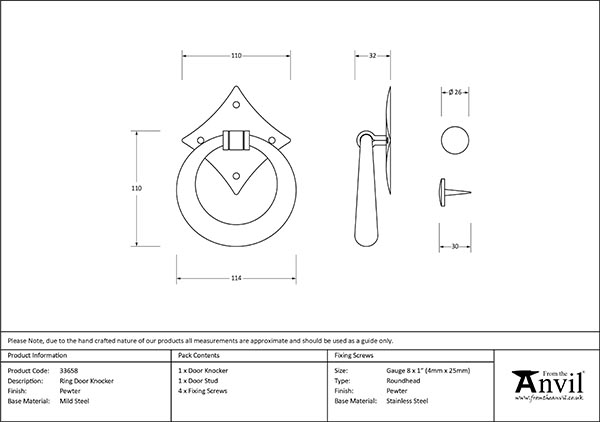 - Our Ring door knocker is crafted from a single piece of mild steel and hand-hammered into shape by our expert Blacksmiths. A true masterpiece of forging.